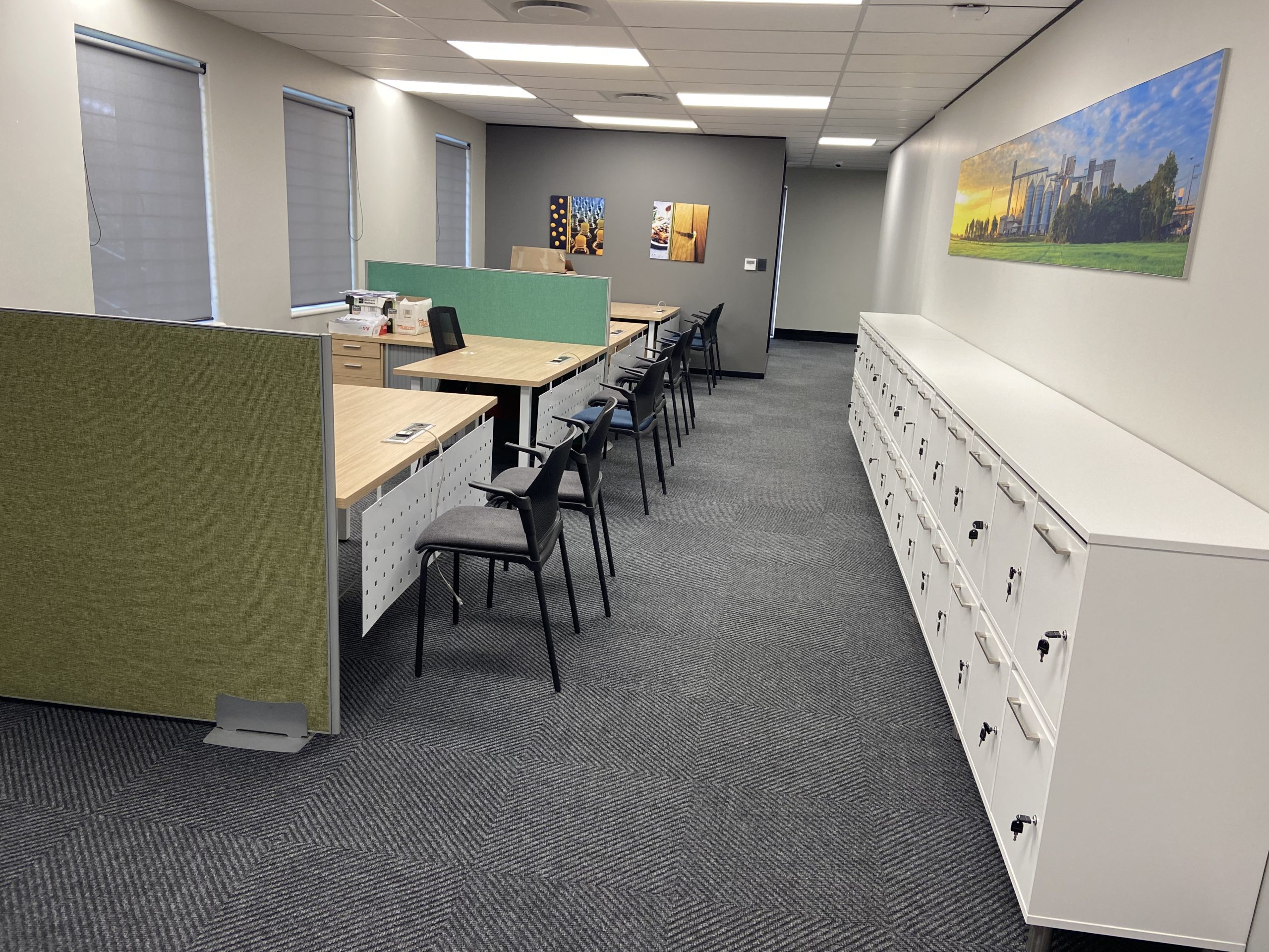 Our solution was to consolidate desks into clusters with partitions and creating a pause area with an eye catching kitchen unit and vinyl flooring.
